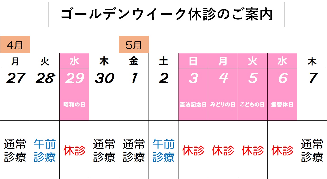 ゴールデンウィークの休診予定